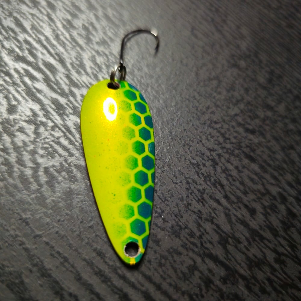 The "Flutter" Action: These spoons have a broader, more rounded "tear-drop" shape than the Horse Mouth spoons. This design creates a wider, more aggressive "kick" and wobble even at very slow speeds.