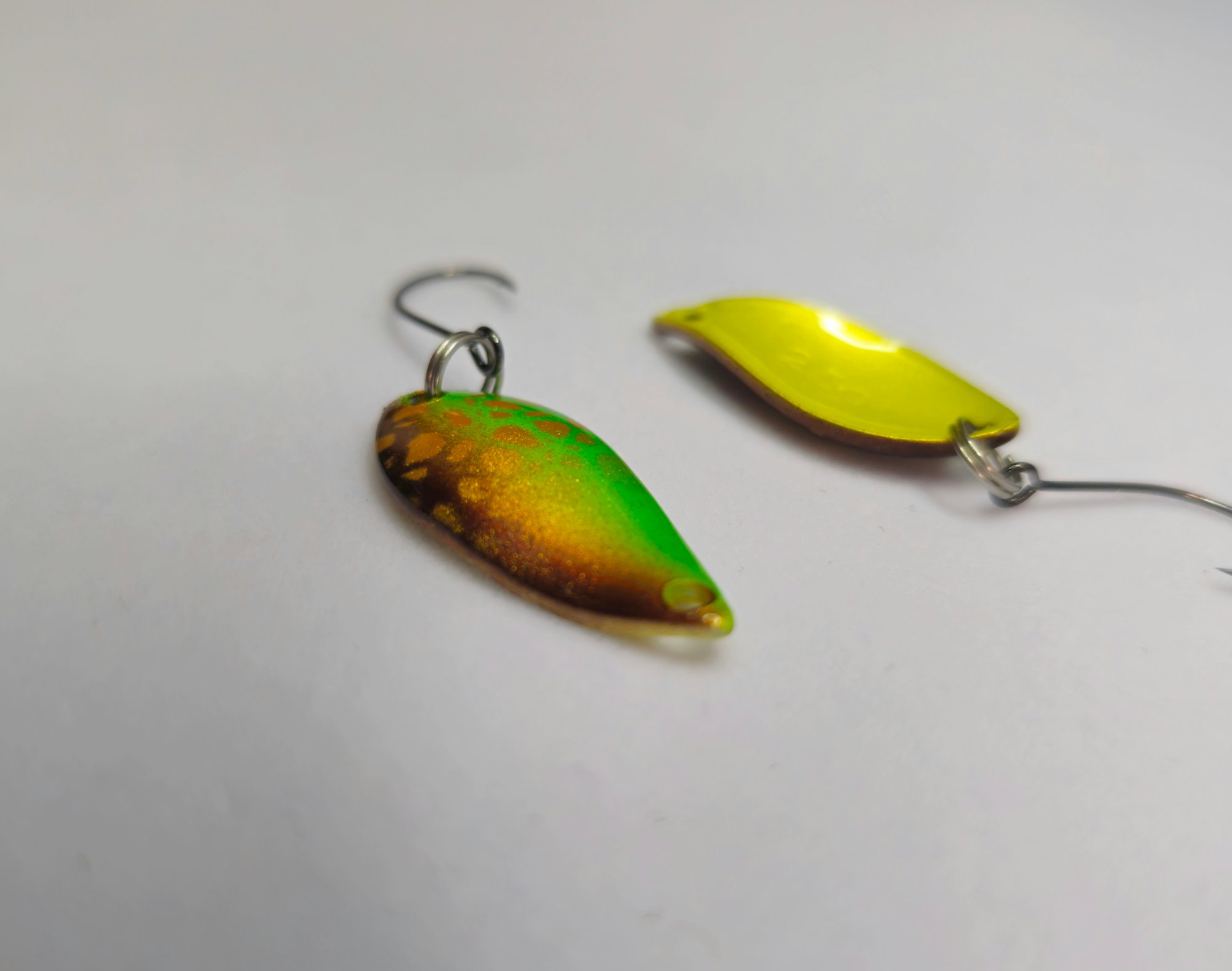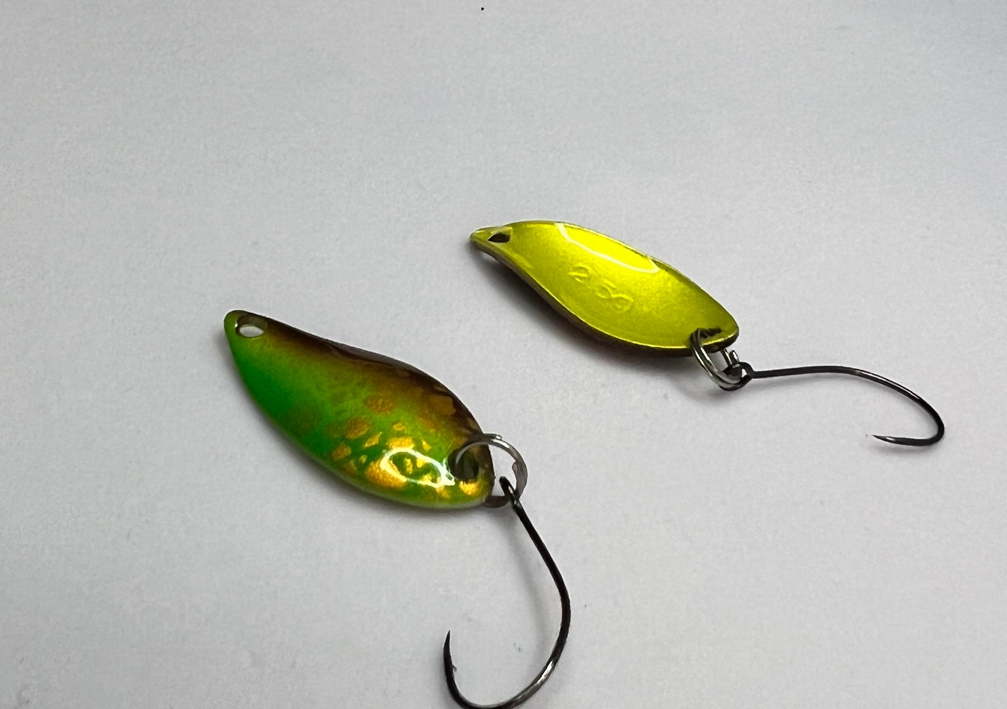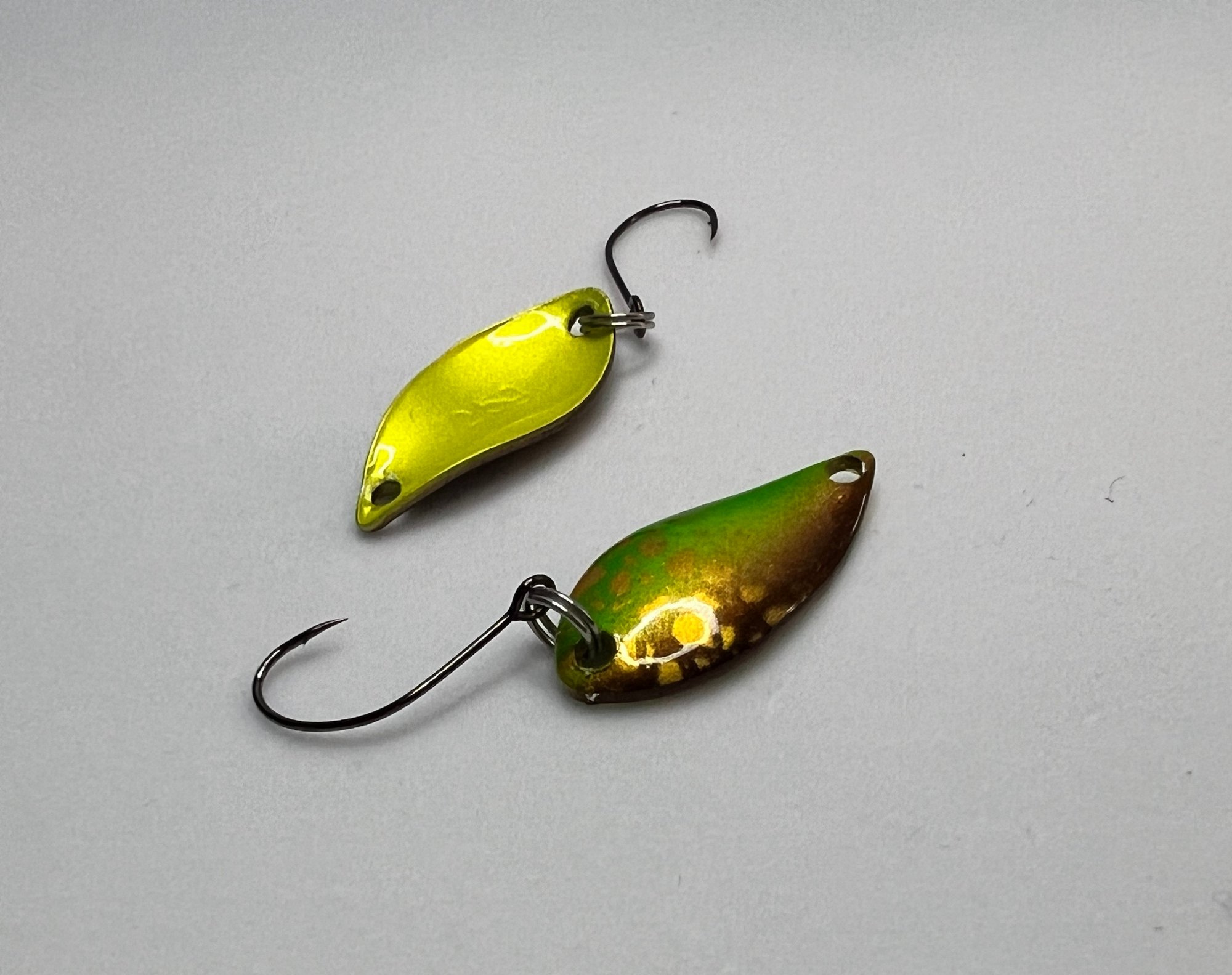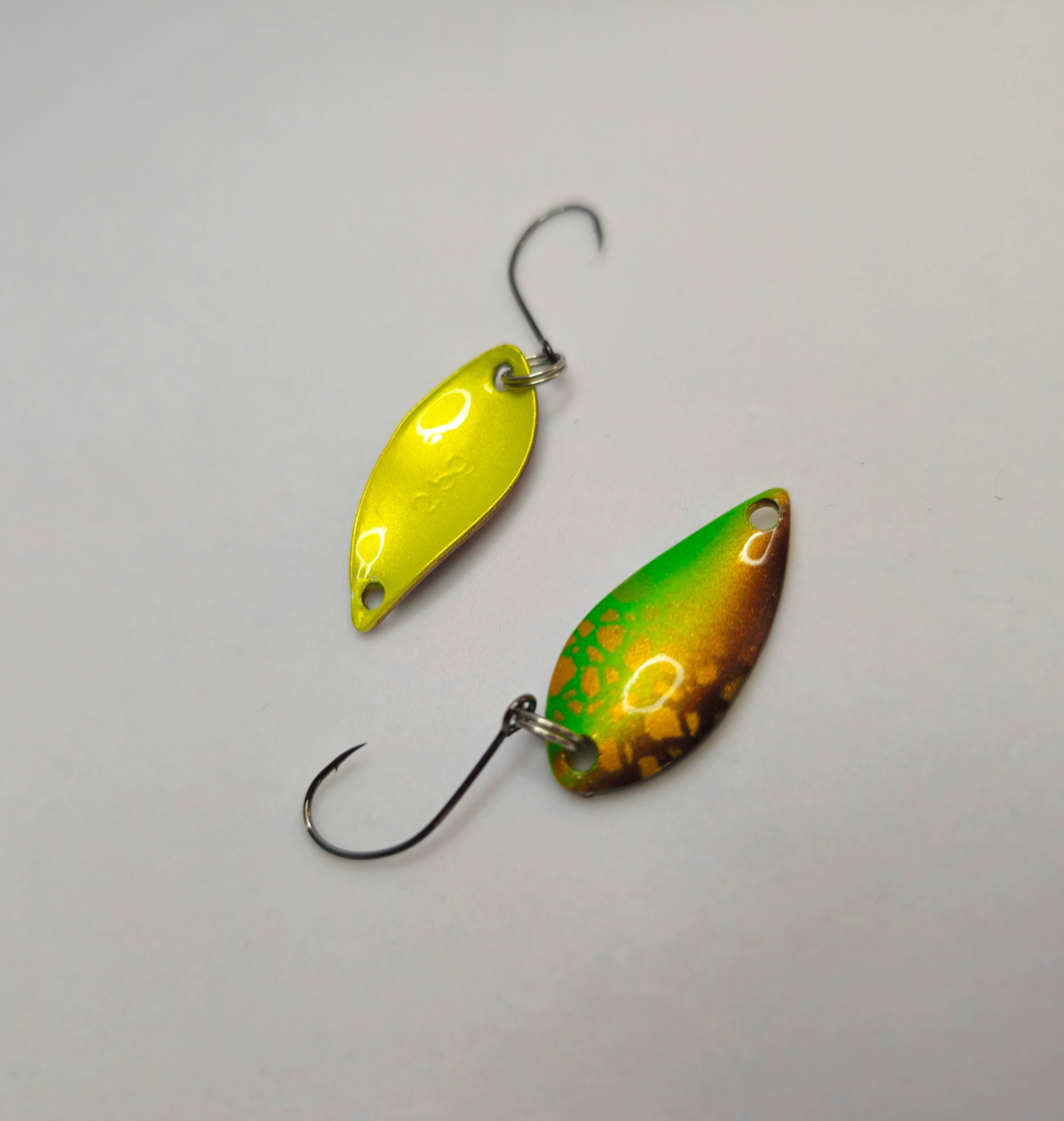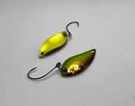 Irregular Wobble: The small teardrop shape creates a very high-frequency, erratic wobbling action that mimics tiny insects or micro-baitfish.