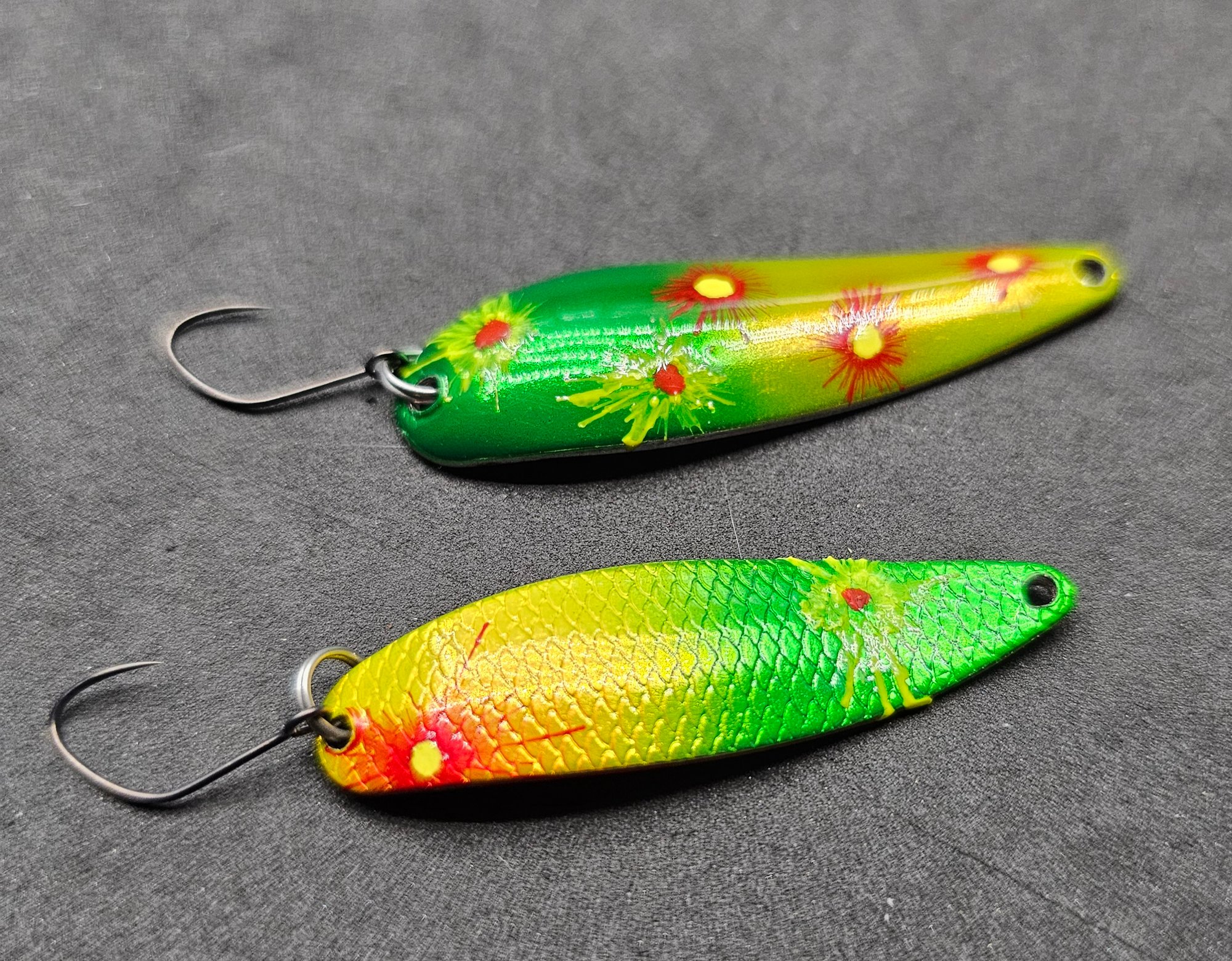 Textured "Scale" Finish: One of the spoons in this set features a raised scale texture. This design is unique because it creates micro-vibrations in the water and breaks up light reflections more naturally than a smooth spoon, making it highly effective for "pressured" fish that have seen many other lures.