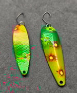 High-Contrast Pattern: The bright green/yellow "sunburst" or "splatter" pattern is designed for high visibility. This is particularly useful in slightly stained water or on overcast days when you need the lure to stand out.