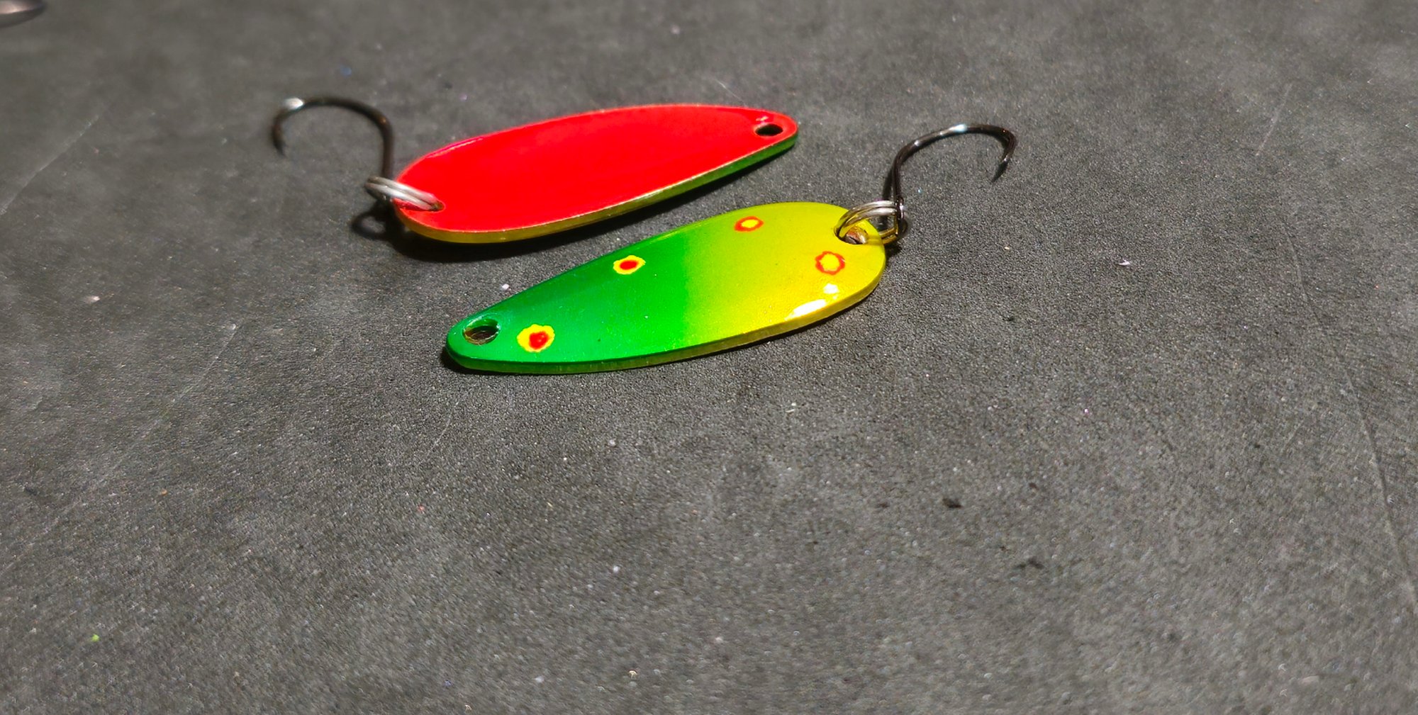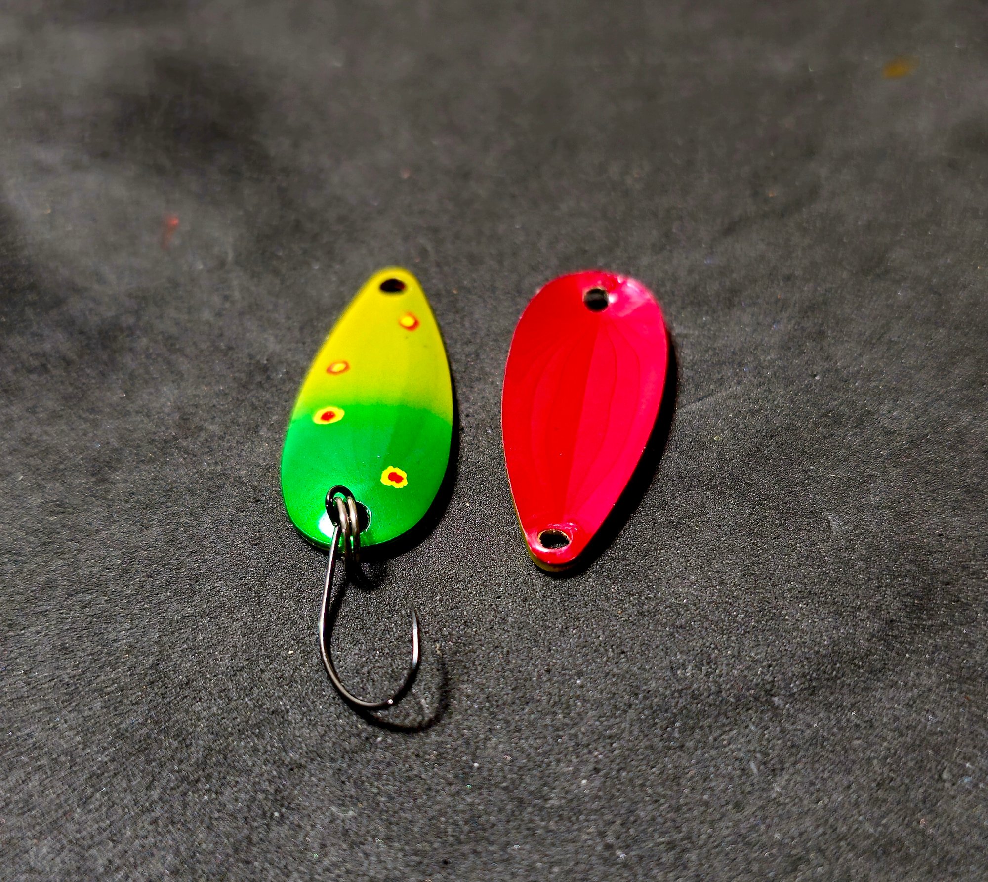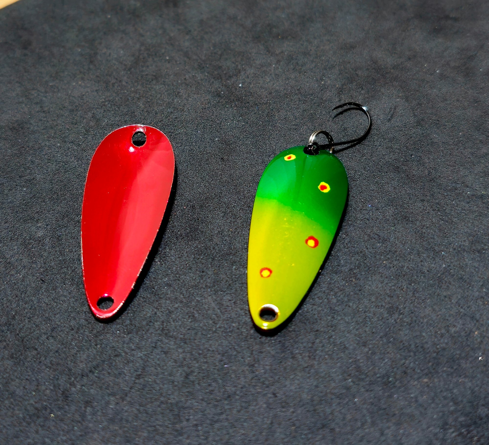 The "Flutter" Action: These spoons have a broader, more rounded "tear-drop" shape than the Horse Mouth spoons. This design creates a wider, more aggressive "kick" and wobble even at very slow speeds.