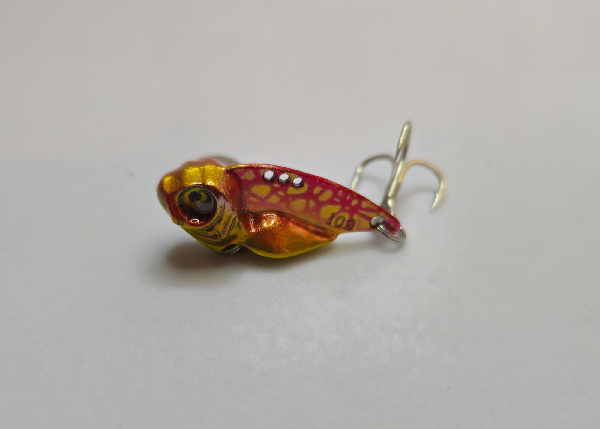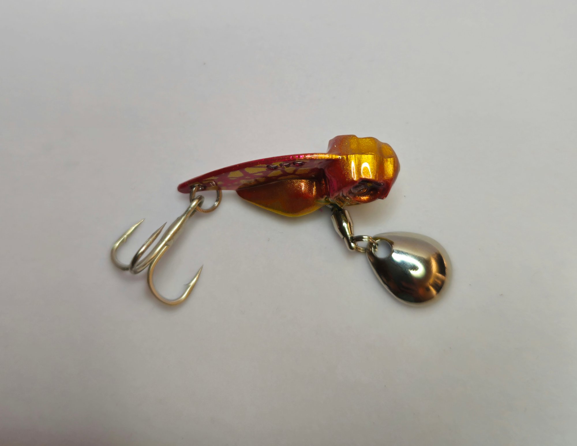 Stable Descent: The weight is concentrated in the head/belly area, which allows the lure to drop straight down without tangling, while the tail blade spins on the way down.
