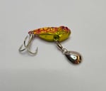 Spinning Blade: The leaf-shaped blade attached to the bottom creates a high-frequency vibration and constant flash as it rotates during the retrieve.