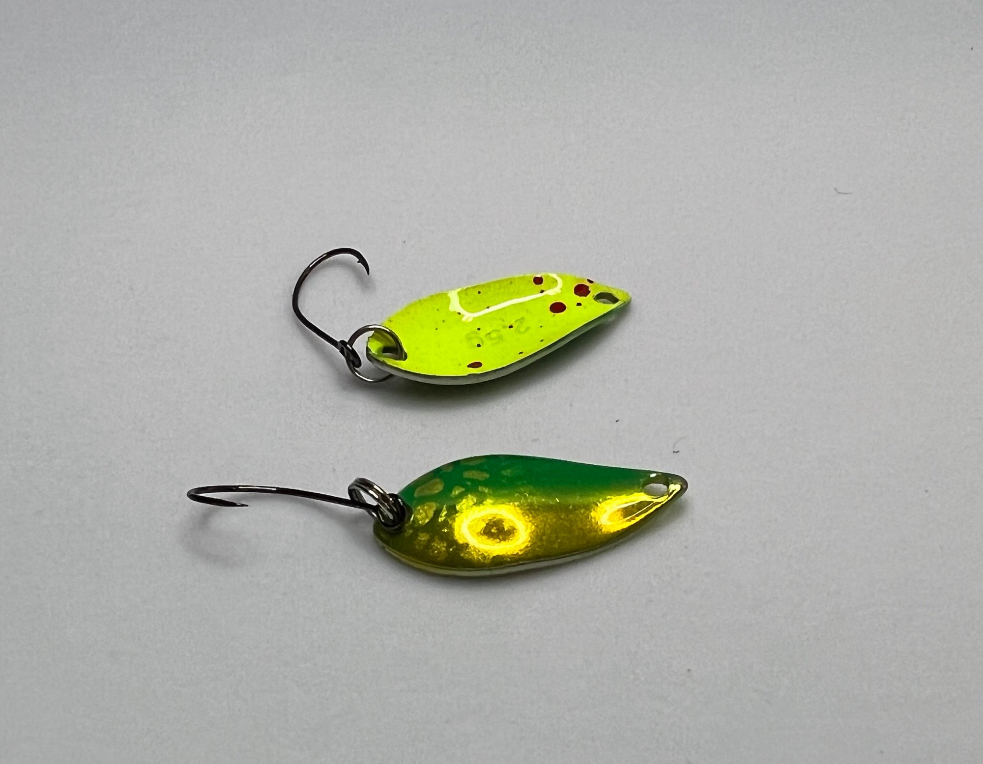 Irregular Wobble: The small teardrop shape creates a very high-frequency, erratic wobbling action that mimics tiny insects or micro-baitfish.