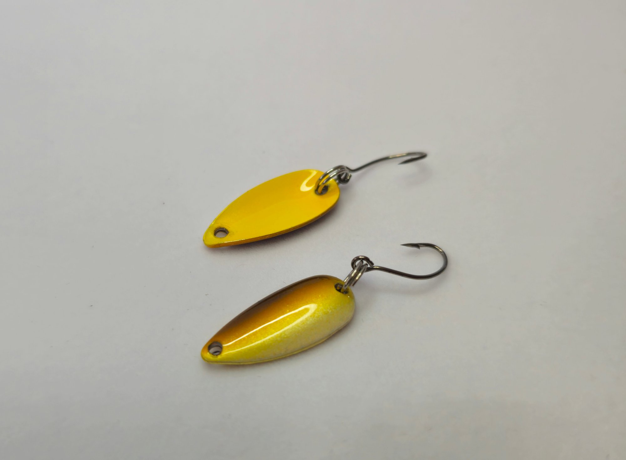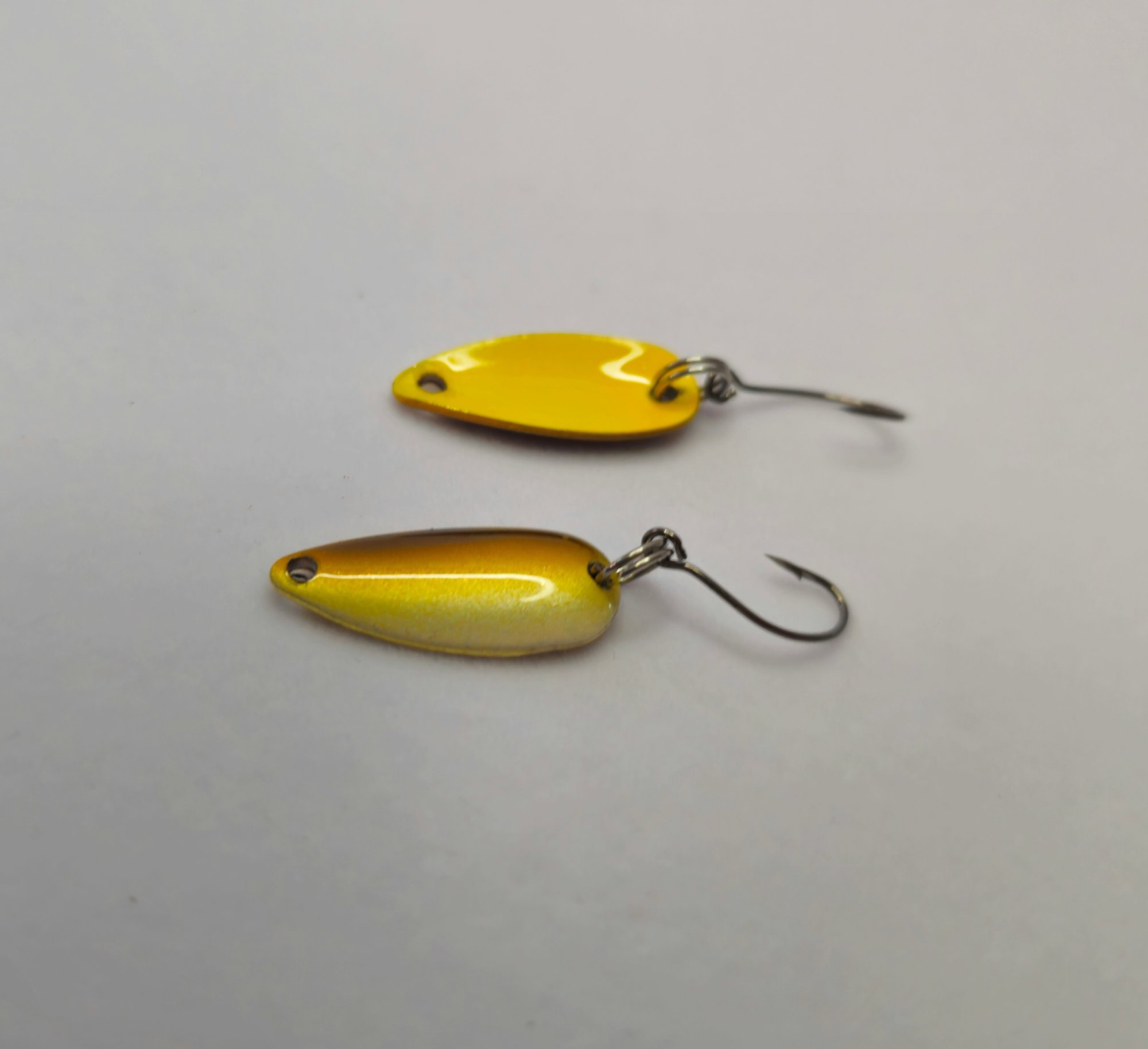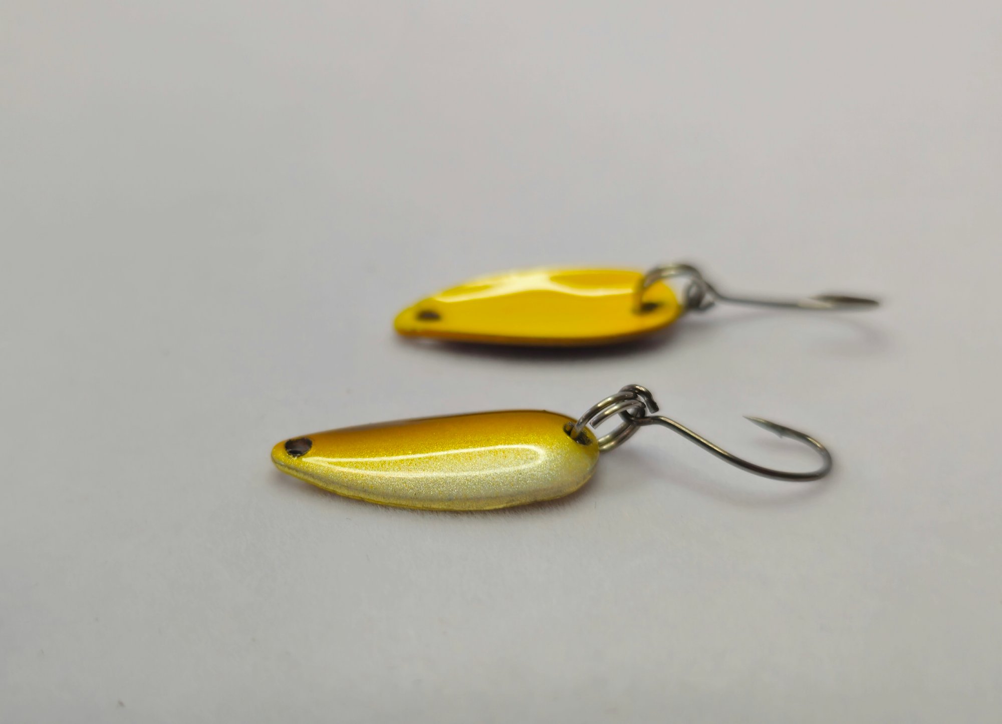 Despite its tiny size, this spoon is made of solid metal and is a Sinking lure.